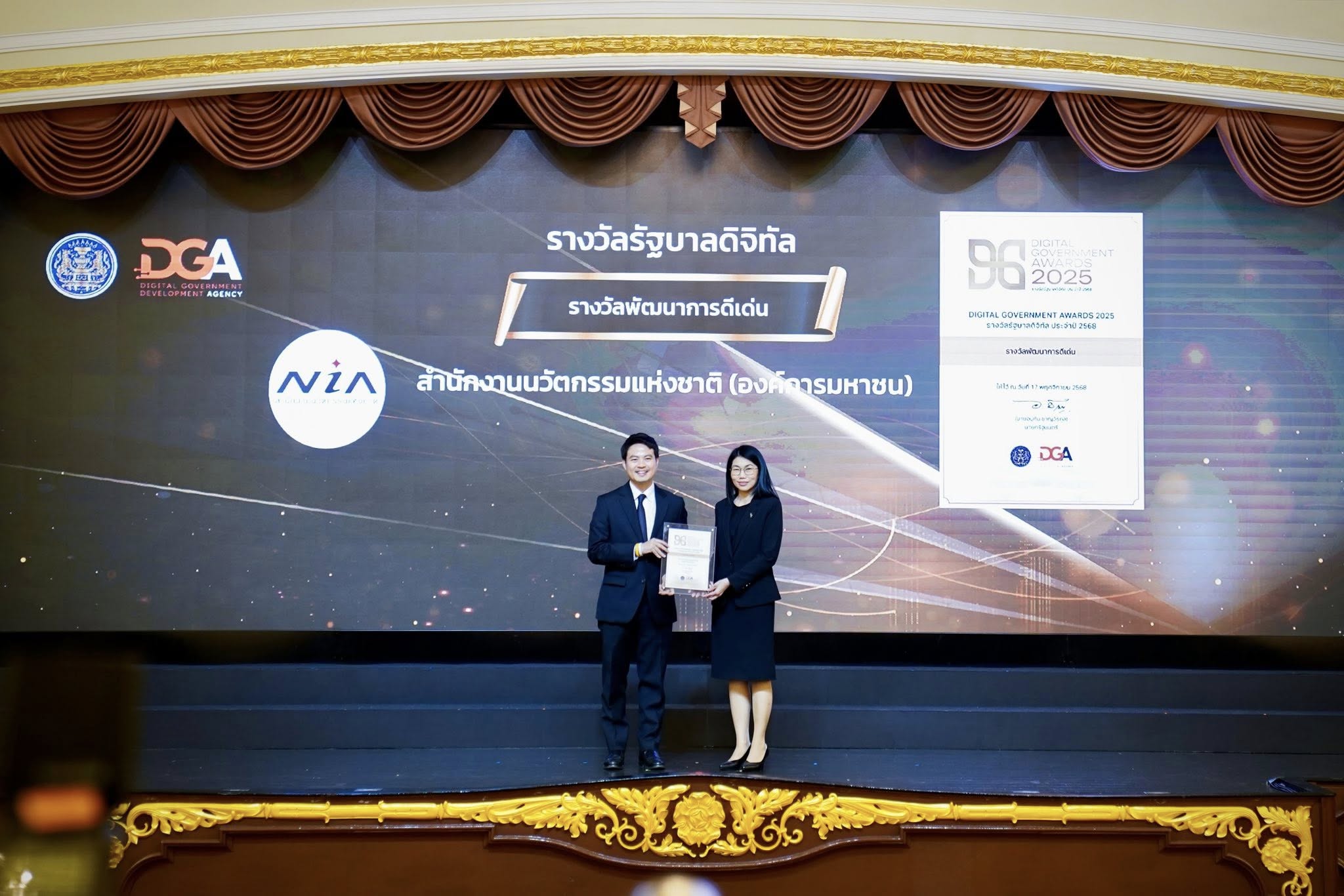 17 พฤศจิกายน 2568 - สำนักงานนวัตกรรมแห่งชาติ (องค์การมหาชน) หรือ NIA กระทรวงการอุดมศึกษา วิทยาศาสตร์ วิจัยและนวัตกรรม (อว.) โดย นางสาวสุพิชญา หลิมตระกูล รองผู้อำนวยการด้านยุทธศาสตร์และบริหารองค์กร ขึ้นรับรางวัลประกาศเกียรติคุณรัฐบาลดิจิทัลประจำปี 2568 (DG Awards 2025) ประเภทพัฒนาการดีเด่น ซึ่งจัดโดย สำนักงานพัฒนารัฐบาลดิจิทัล (องค์การมหาชน) หรือ DGA เพื่อเชิดชูและประกาศเกียรติคุณแก่หน่วยงานภาครัฐที่เป็นต้นแบบการพัฒนารัฐบาลดิจิทัลของประเทศ ได้รับเกียรติจาก นายภราดร ปริศนานันทกุล รัฐมนตรีประจำสำนักนายกรัฐมนตรี เป็นประธานในพิธีมอบรางวัลและแสดงความยินดีกับหน่วยงานที่ได้รับรางวัล โดยมี นางไอรดา เหลืองวิไล รองผู้อำนวยการ รักษาการแทนผู้อำนวยการสำนักงานพัฒนารัฐบาลดิจิทัล กล่าวให้การ ต้อนรับและรายงานผลสำรวจและความก้าวหน้าการพัฒนารัฐบาลดิจิทัลของประเทศ ณ ตึกสันติไมตรี ทำเนียบรัฐบาล