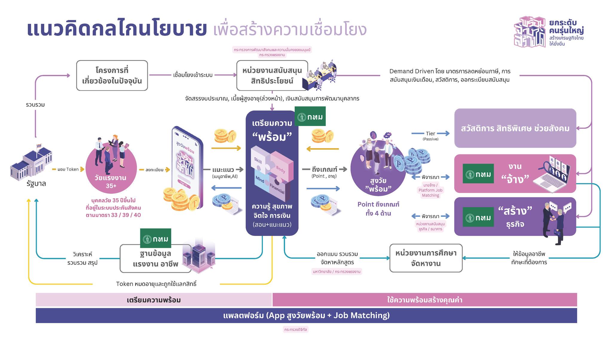 - และส่งเสริม กิจกรรมสร้างแรงจูงใจให้คนวัยทำงานเริ่มเตรียมความพร้อมก่อนเข้าสู่วัยสูงอายุ ทั้งในด้านสุขภาพ การเงิน และอาชีพ