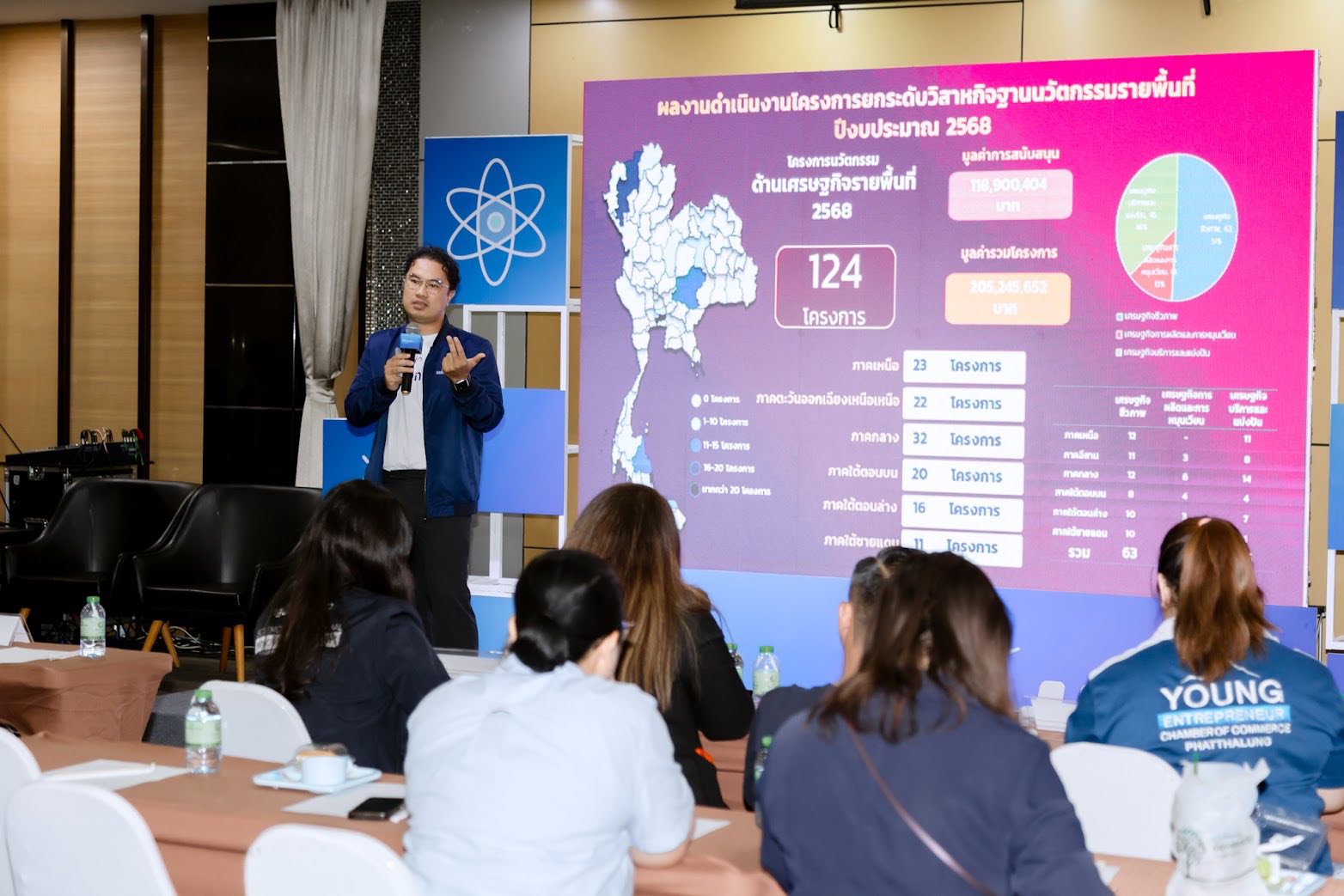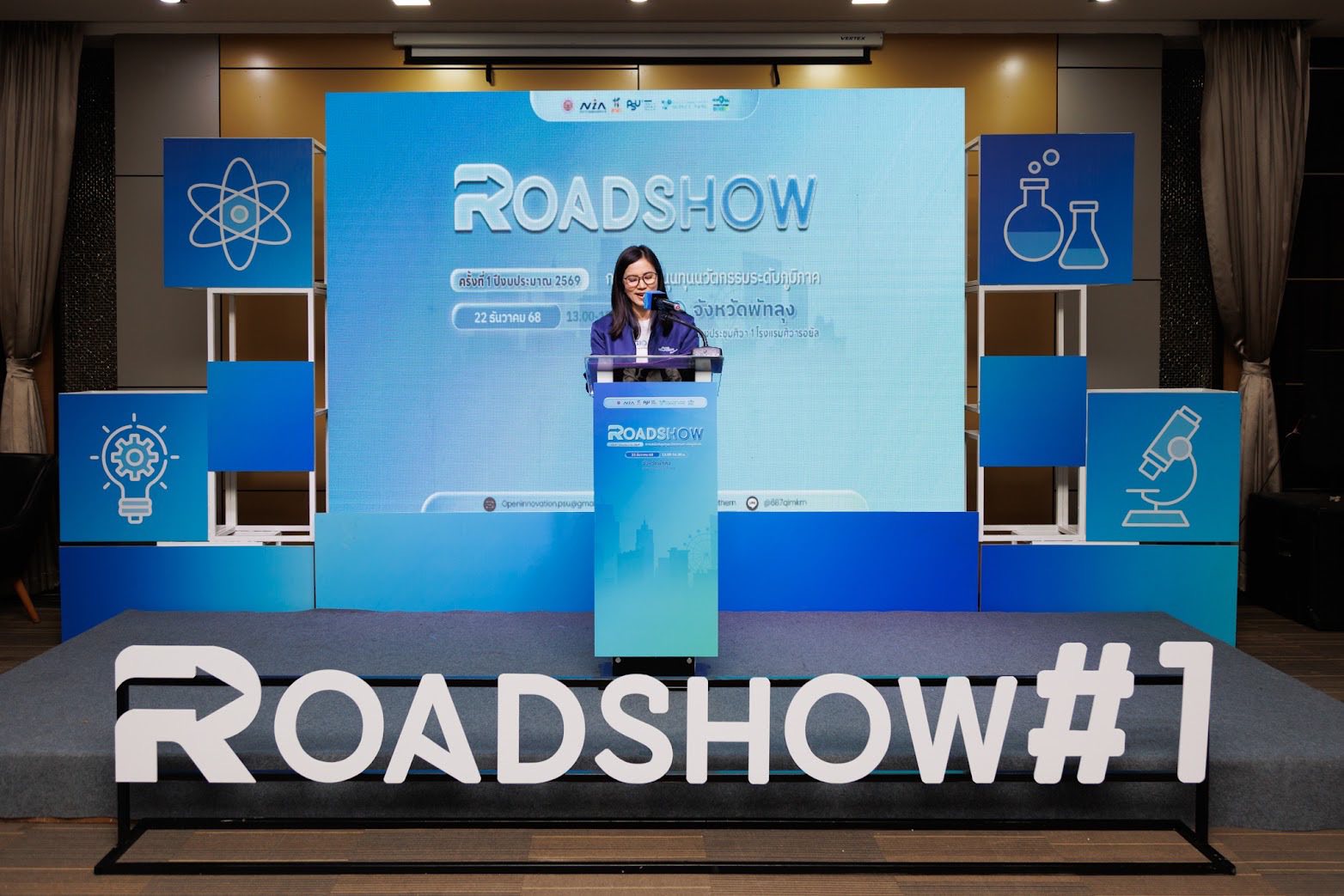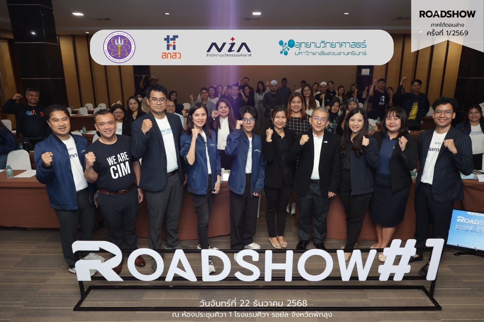 NIA โดยฝ่ายสนับสนุนการเงินนวัตกรรมรายพื้นที่ ร่วมกับอุทยานวิทยาศาสตร์ มหาวิทยาลัยสงขลานครินทร์ จัดกิจกรรมประชาสัมพันธ์กลไกการสนับสนุนทุนสำหรับการพัฒนาขยายผลธุรกิจนวัตกรรมรายพื้นที่ “Regional innovation roadshow ภาคใต้ตอนล่าง ครั้งที่ 1/2569” ณ ห้องประชุมศิวา 1 โรงแรมศิวา รอยัล จังหวัดพัทลุง เมื่อวันที่ 22 ธันวาคม 2568
