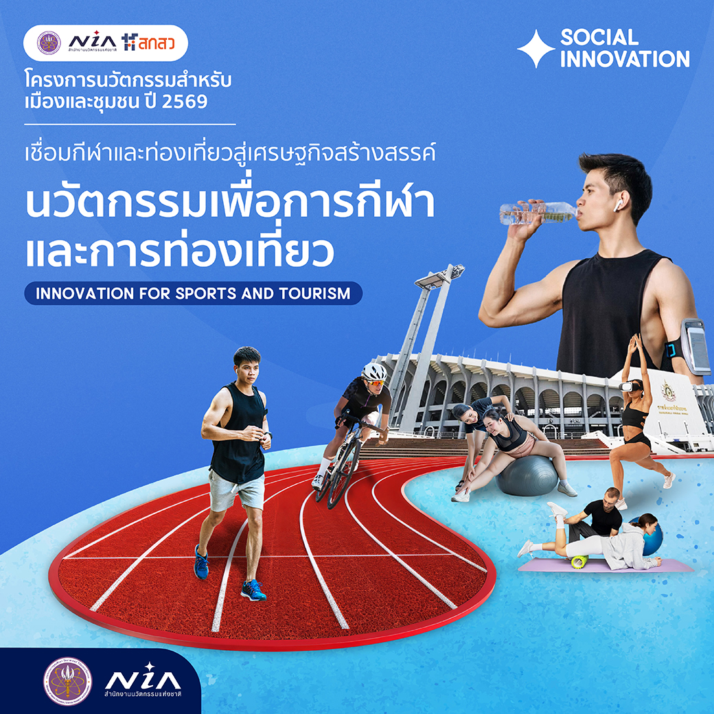 กีฬาในปัจจุบันจึงไม่ได้เป็นเพียงกิจกรรมเพื่อการรับชม แต่จะเป็นโอกาสใหม่ของประเทศไทย ดังนั้นเพื่อจะผลักดันต่อยอดโอกาสนี้ NIA จึงพร้อมให้การสนับสนุนนวัตกรรมเพื่อการกีฬาและการท่องเที่ยว ซึ่งมีหัวข้อย่อยดังนี้