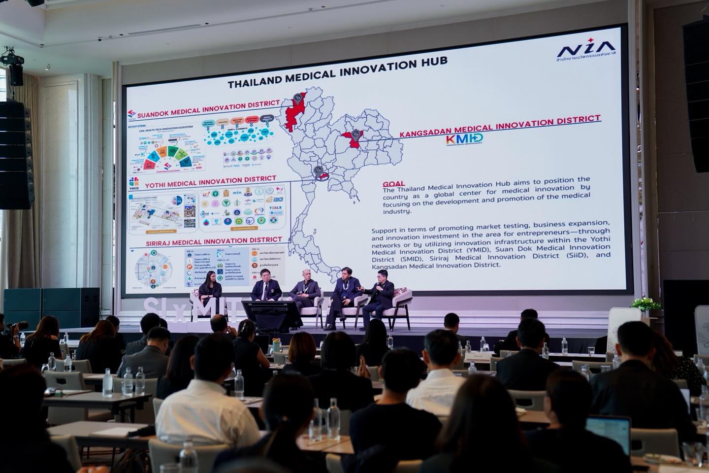 ทั้งนี้ ดร.กริชผกา บุญเฟื่อง ผู้อำนวยการสำนักงานนวัตกรรมแห่งชาติ ได้รับเกียรติเชิญร่วมเสวนาในหัวข้อ Accelerating Mass Adoption of AI for Public Health ร่วมกับ ศ.ดร.นพ. ยงยุทธ ศิริวัฒนอักษร ผู้อำนวยการโรงพยาบาลศิริราช Dr. Michael V. McConnell, Clinical Professor Medicine, Cardiovascular Medicine at Stanford University Dr. Cheong Wei Yang, Vice Provost (Strategic Research Partnerships) of Singapore Management University และคุณนาเดีย สุทธิกุลพานิช รองกรรมการผู้จัดการใหญ่ บริษัท เมืองไทยประกันชีวิต จำกัด (มหาชน) ซึ่งได้แลกเปลี่ยนประสบการณ์และมุมมองในการเปลี่ยนผ่านเทคโนโลยีปัญญาประดิษฐ์ (AI) จากห้องปฏิบัติการวิจัยและการทดลองไปสู่การใช้งานจริงในระบบสาธารณสุขในระดับประเทศ โดยมีเป้าหมายสูงสุดคือการยกระดับสุขภาพของประชาชนในวงกว้าง ทั้งเรื่องการวินิจฉัยและการรักษาที่แม่นยำ การสนับสนุนการสร้างและขยายโอกาสของ Health Tech Startup ที่พัฒนาโซลูชัน AI ให้สามารถเติบโตและเข้าสู่ตลาดสาธารณสุขได้