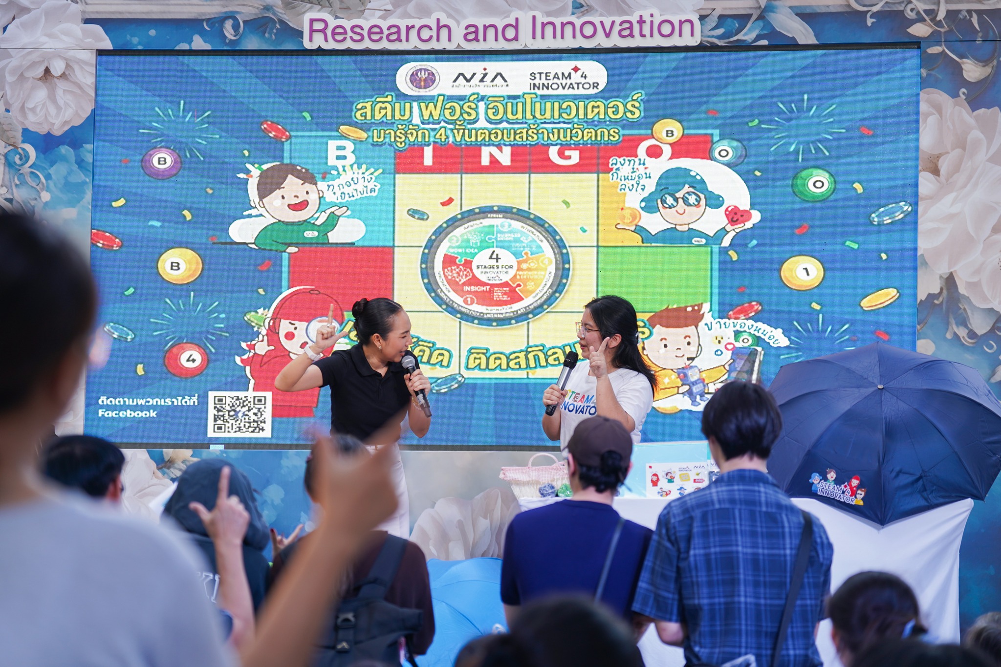 กิจกรรมภายในงานมีทั้งกิจกรรมสอยดาวลุ้นรับรางวัลใหญ่ และรางวัลพิเศษจาก NIA ซึ่งเป็นสินค้านวัตกรรมที่ได้รับการสนับสนุนจาก NIA อาทิ “ตานีสยาม” กระเป๋าแปรรูปจากกาบกล้วย กระเป๋าผ้าทอจากเส้นใยสับปะรด นอกจากนี้ยังมีกิจกรรม STEAM4INNOVATOR: INNO BINGO GAME เกมบิงโกที่ผสานทักษะการคิด วิเคราะห์ สังเกต และเชื่อมโยงไอเดียแบบนวัตกร ดำเนินการจัดกิจกรรมโดย งานพัฒนานวัตกรรุ่นเยาว์ ซึ่งได้รับเสียงตอบรับจากผู้ร่วมงานเป็นอย่างมาก บรรยากาศเป็นไปอย่างคึกคักครบทั้งสาระและความสนุกสนาน